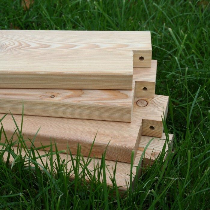 Такие породы дерева, как лиственница и акация больше всего подходят для строительства высоких грядок. Они обладают долговечностью, прочностью и невысокой ценой. Для сбора короба нам подойдут брусья, половинки брёвен, вагонка, горбыль и доски.