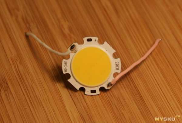 Дальше сюрприз. Лампочка была заказан самая маломощная из тех что предлагал продавец — 6 вт. Однако поиск в гугле по циферкам со светодиода приводит вот на эту страницу — dopdea.en.alibaba.com/product/1299038867-0/3W_COB_LED_chip_round_DPD_28_0302_warm_white_RoHS_and_EN62471_compliant_item_115.html