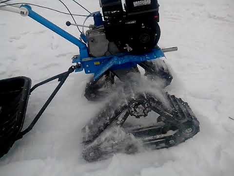 Уход и использование гусеничного модуля не вызывает у владельцев особых сложностей, а сделать его самостоятельно совсем несложно. Предстоит учитывать, что, когда мотоблок укомплектовывается гусеничным модулем, его скорость уменьшается. Однако способность устройства перемещаться по сложным местностям, перевозить грузы и даже очищать территорию от снега возрастает.