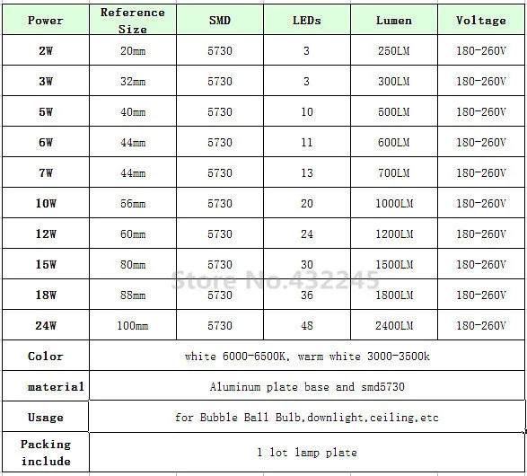 При составлении спецификации использовали производители Edison, NationStar. У европейских брендов лучше, у китайских немного хуже, примерно на 15-20%. Таблица составлена по цветовой температуре 6000К (Кельвин), нейтрально-белый свет. Есть и другие существенные модификации, отличия в таблице характеристик.