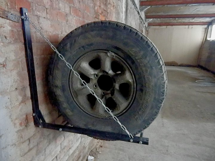 В случае, если вы выберите подвешивание колес на стену гаража, учтите, что вешать покрышки без диском нельзя. Резина за короткое время деформируется и не будет выполнять поставленных задач в сезон. Если вы храните резину на дисках, можно накачать колеса до 0.
