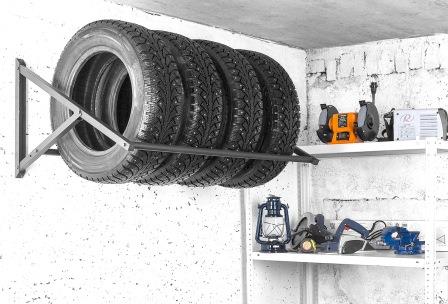 - организация специального стеллажа для четырех покрышек, в которой каждое колесо будет лежать на отдельной полке;