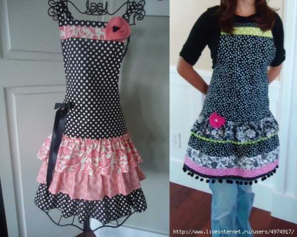 Самая обычная модель фартука предстанет в новом свете при удачном выборе расцветки ткани и фурнитуры