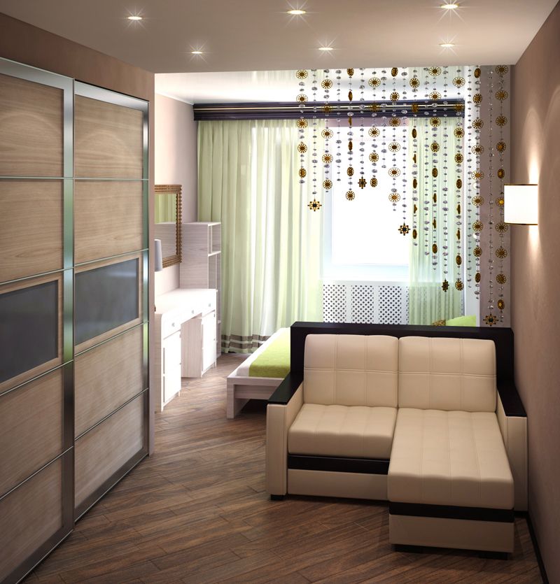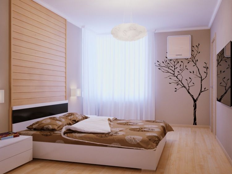 А вот вместо шкафа здесь использовали нишу, которую оборудовали под небольшой гардероб – отличное решение для небольшого пространства.