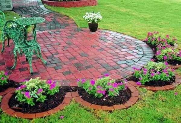 А это хороший пример использования тротуарной плитки в качестве ограждения для цветника.