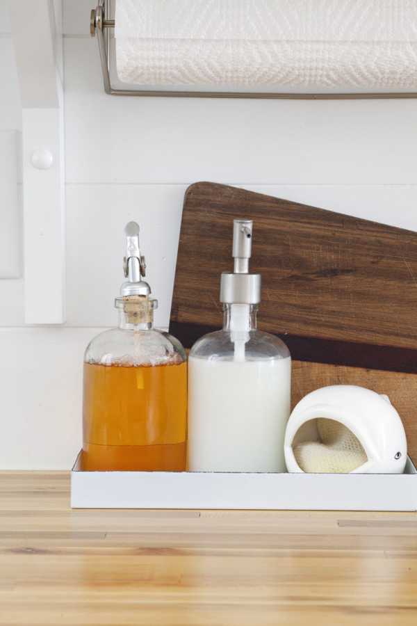 - Рядом с мойкой необходимо поставить ящик для столовых принадлежностей. Таким образом, не придется за ними далеко тянуться.