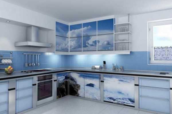 Кухонный фартук можно отделать какой-либо необычной плиткой. Но полную неповторимость дизайна он обретёт после технологии под названием «фотопластификация». Этот способ декора позволит оформить стены широкоформатными картинами в самом высоком разрешении. После того как между основой из алюминия и оргстеклом эти картины запаяны, получается фотография, которая полностью защищена от воздействия внешних факторов.