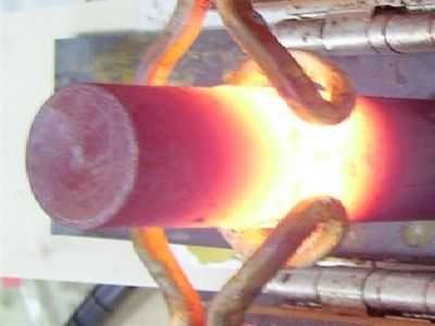 Бесконтактная индукционная плавка металловТакже разновидностью индукционной печи является нагрев кузнечных заготовок при помощи индукции. Благодаря внутренней схеме устройства происходит подстройка частоты в зависимости от изменения индуктивности катушки, которое происходит при помещении в нее заготовки. Пример промышленной установки на видео: