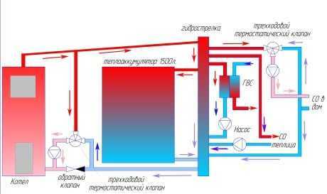 - Далее можно сделать малый круг замыкания подачи горячей воды с обраткой. Иногда это помогает предохранять котел от перегрева.