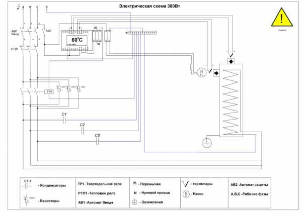 Электрическая схема управления для индукционного котла, подключенного к линии 220 В