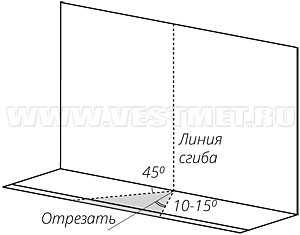 Сделайте вырез на нижней полке от линии загиба под 45°. На краю срежьте 25 мм завальцовки.