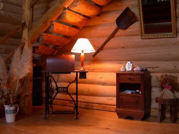 На потолке должны быть видны балки. Пол покрывается досками или керамической плиткой.