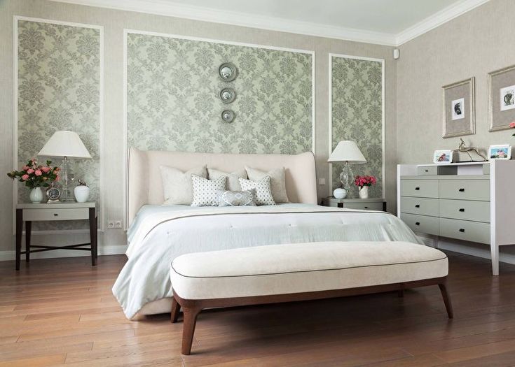 Обои белого цвета можно комбинировать с другими, например пудрово-розовыми или серыми. Выбор зависит от стиля, в котором исполнено домашнее убранство. Если это строгий минимализм, обои должны быть однотонными. Современные модные тенденции допускают применение дамасского узора нежного серого оттенка. Мягкие контрасты прекрасно смотрятся на белом полотне и придают образу изысканность.