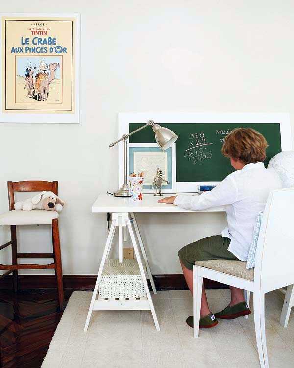 - Позаботьтесь об удобном расположении письменного стола и стула. Некоторые дети предпочитают выполнять домашние задания на столе в гостиной либо другой комнате, но никак не в спальне. Это неплохой вариант в том случае, если комната мальчиков отличается весьма скромными размерами.