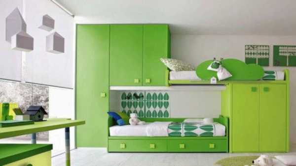 Для любой спальни необходимо грамотно оборудованное пространство для хранения вещей. Это могут быть распашной шкаф или купе, комоды, тумбы, полки. При нехватке места около каждой кровати можно разместить по пеналу или выделить для детей раздельные полки в одном шкафу. Хорошим решением будет наличие выдвижных ящиком под спальными местами, наличие встроенного шкафа-купе.
