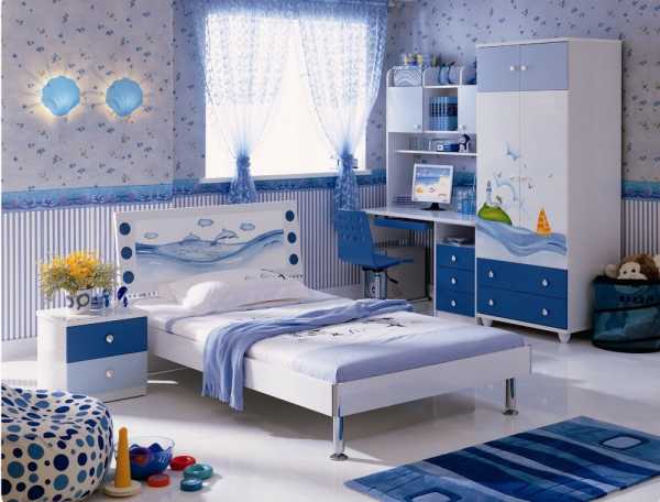 Спальная комната для девочки в голубом цвете