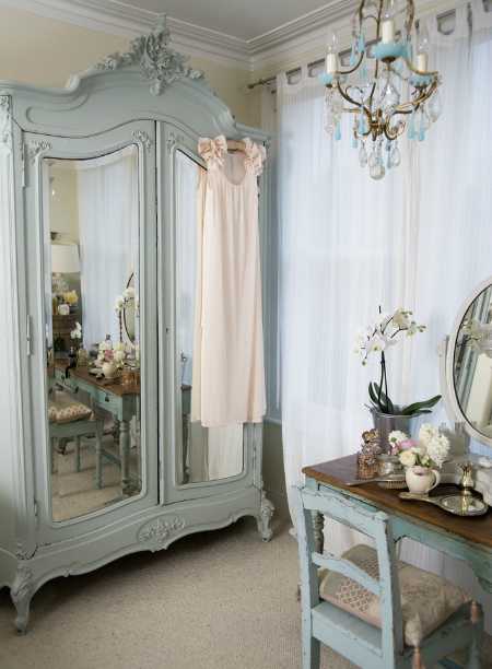 За его зеркальными дверцами есть и полки для белья, и место для верхней одежды, и выдвижные ящики. Каждой девочке — своя “половинка” шкафа.