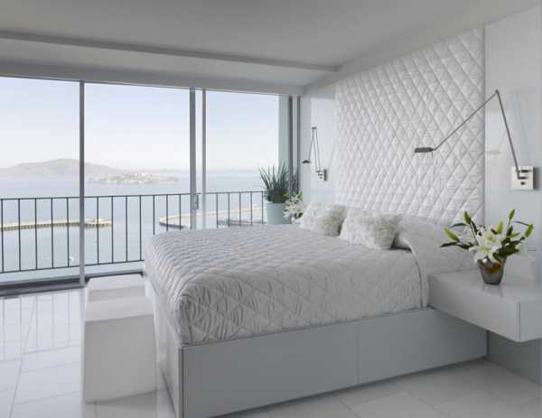 Если говорить о самых универсальных цветовых решениях отделки спальни, а ведь именно цвет стен во многом определяет всю картину интерьера, можно смело ставить на первой место белый цвет. Это универсальное решение можно использовать в спальнях любых форм и размеров, практически всех стилистических решений интерьера. Белый цвет отлично справляется с визуальным расширением пространства и служит идеальным фоном для меблировки и декора любых цветовых решений.