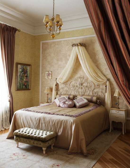 Если, всё же, вас восхищает убранство старинного дворца, тогда, ориентируясь на увиденное, создать красивый интерьер спальни, будет не сложно.
