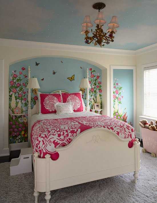 - щедро украсьте комнату текстилем (пышными драпировками на окнах, пологом над кроватью).