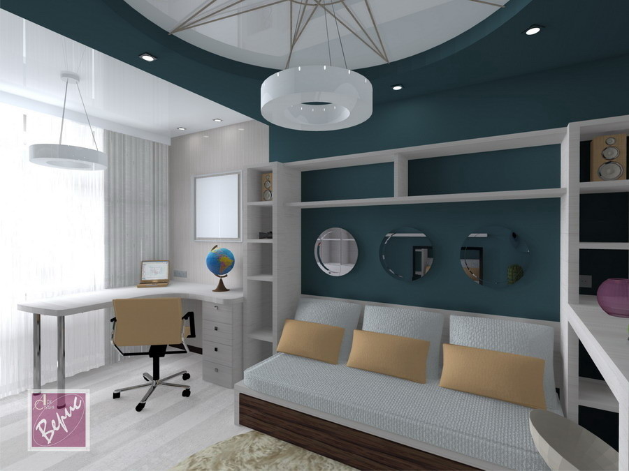 Главное условие-это цвет потолков. Важно чтобы цвета были спокойные и не давили на ребёнка, создавая неприятную атмосферу.