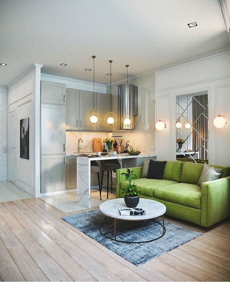 Роскошный минималистский интерьерОдним из особенно эффективных подходов является сочетание минималистского дизайна с элементами роскоши. Из плюшевых ковриков, минималистской лампы, бра или подвесного светильника и предметов мебели высокого класса. Это может помочь создать минималистскую квартиру-студию, которая кажется одновременно продуманной, стильной и привлекательной. Только не переусердствуйте с этими элементами. Слишком много всего может быстро сделать маленькое пространство загроможденным и тесным.