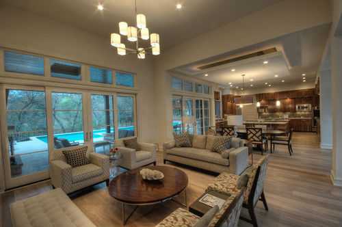 Благодаря огромному пространству загородного дома в совмещенной кухне гостиной можно создать поистине уникальный интерьер в любом стиле.