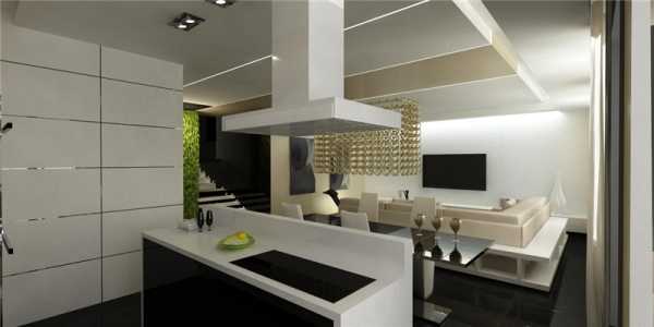 - Кроме того в таком помещении можно создать три так называемые визуальные зоны: гостиную, кухню и столовую. То есть для приема пищи можно использовать зону столовой, из которой в два шага можно оказаться на кухне и взять необходимые предметы, а также смотреть телевизор, расположенный в зоне гостиной.