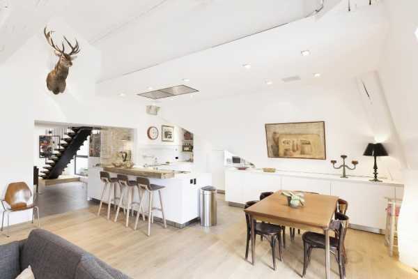 Частично демонтированные стены служат визуальной границей между кухней и гостиной