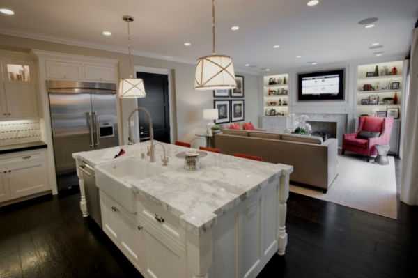 Объединение гостиной и кухни позволит домочадцам проводить больше времени вместе