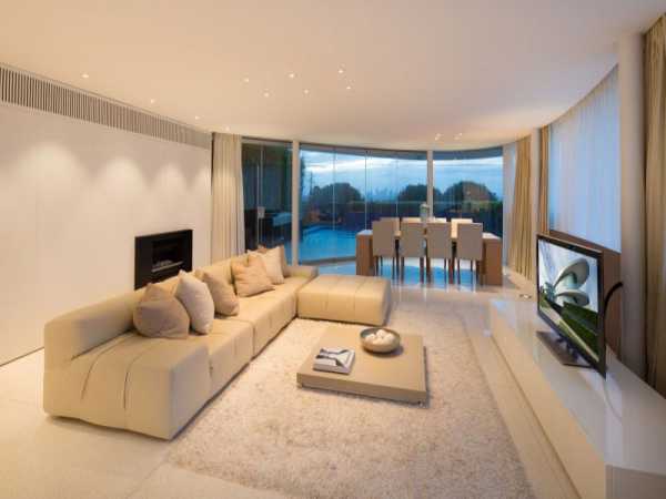 В такой гостиной обязательно должен находиться небольшой кофейный столик. При необходимости на него можно поставить напитки, еду и прочие принадлежности.