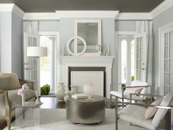 Гостиная предназначена для встречи друзьями и регулярных посиделок домочадцев, так что не стоит злоупотреблять кричащими и тёмными цветами. Во многом на выбор цвета влияет и применяемый в комнате интерьерный стиль. Так в классическом декоре лучше отдать предпочтение светлым мягким тонам. Это могут быть оттенки бежевого, коричневого кремового, золотистого, голубоватого или зелёного цветов.