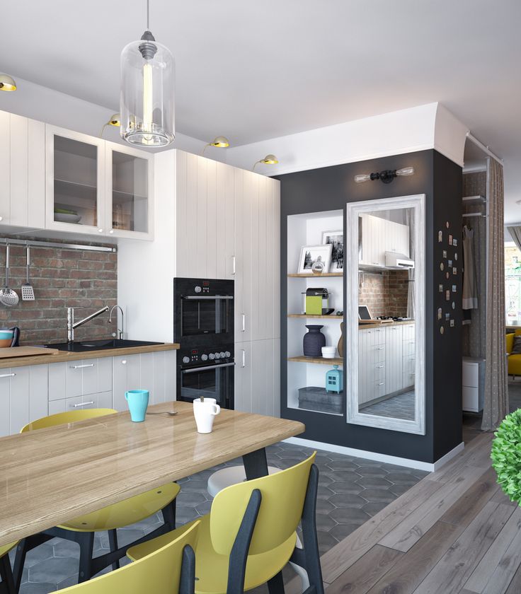 Одна из хитростей, которую вы можете использовать, когда дело доходит до двухкомнатной квартиры, – использование большого количества зеркал. Зеркала зрительно увеличивают пространство, что делает помещение более привлекательным. Сделайте идеальное зеркало частью вашего жилого пространства.