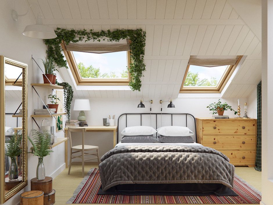 Чердаки имеют репутацию темных и неприветливых помещений; полная противоположность спальне вашей мечты. Поэтому важно найти способы увеличить естественное освещение в вашей спальне на чердаке. Один из самых простых способов — выбрать светлую, яркую цветовую гамму.