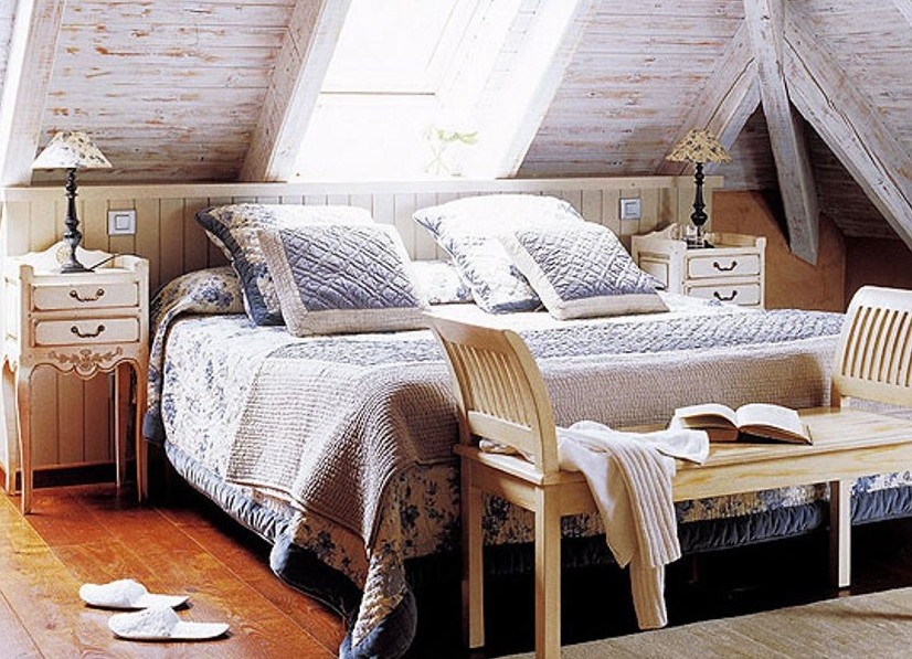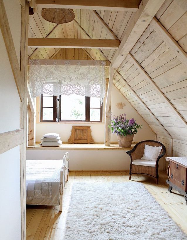 Кантри и шале. Хороший выбор для мансарды в доме из дерева: состаренные, грубоватые древесные текстуры укажут на принадлежность обстановки к эстетике лыжных домиков в горах. Стили кантри и шале подойдут для темных пространств, выходящих окнами на север, с маленькими оконными проемами.