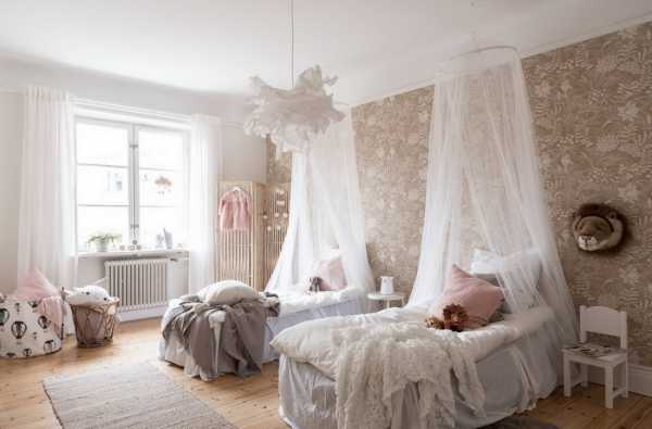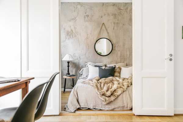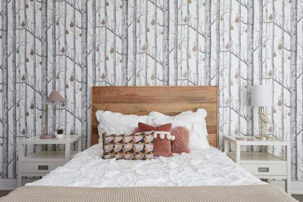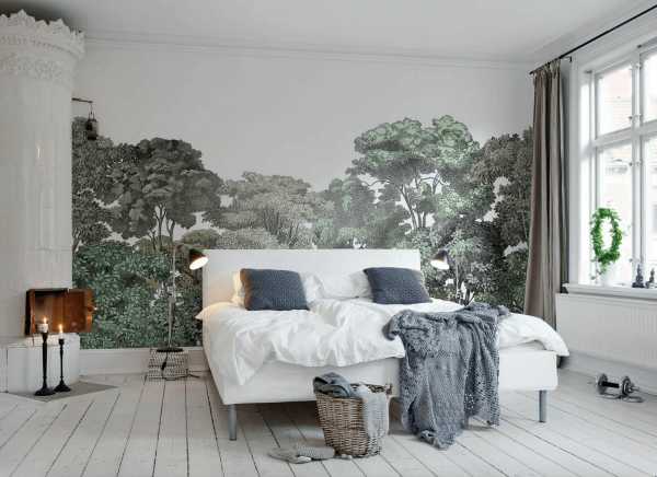 Особенностью этого направления считаются белые стены, которые визуально расширяют пространство. Обои для скандинавской спальни выбирают однотонные либо с простым геометрическим рисунком.