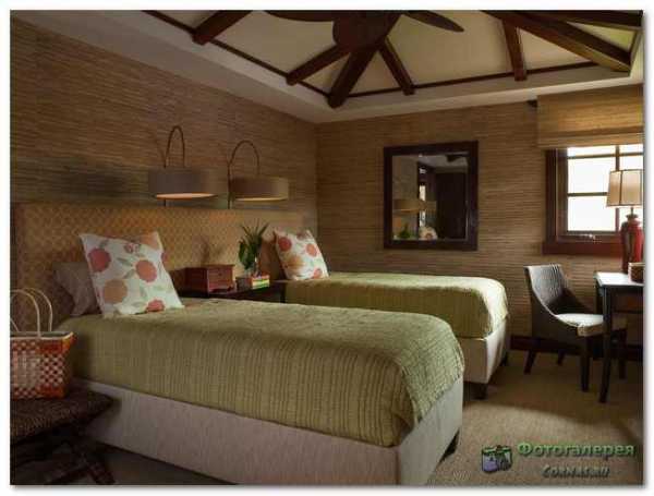 Эффектный и необычный вариант. При их производстве используют ручной труд, поэтому цена на эти обои достаточно высокая. Натуральные обои бывают растительные (на основе водорослей, тростника, джута), бамбуковые, пробковые, на основе натурального шпона, слюдяные. Для внесения «изюминки» в интерьер спальни можно оклеить ими одну из стен. Натуральные обои имеют ряд недостатков: они впитывают влагу и выгорают на солнце.