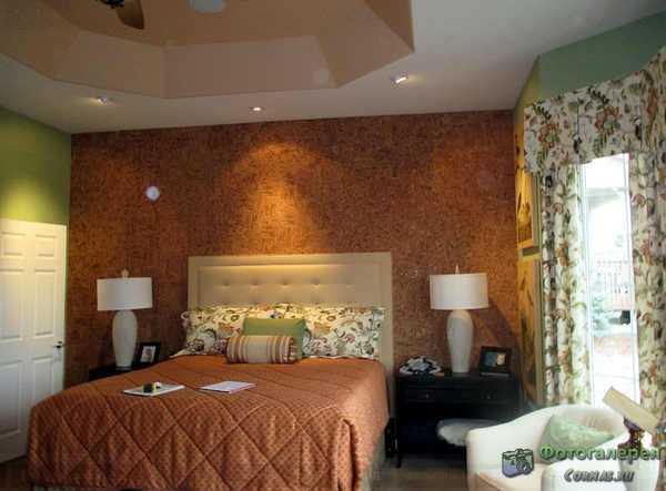 Это еще один тип натуральных материалов, которые весьма благоприятны для использования в спальне. Преимущества пробки в том, что она сама по себе создает благоприятную атмосферу в помещении, плюс это хороший шумо и тепло изолятор. Если вы хотите создать атмосферу уюта, спокойствия и тишины в спальной, пробковые обои справятся с этим лучше всего.