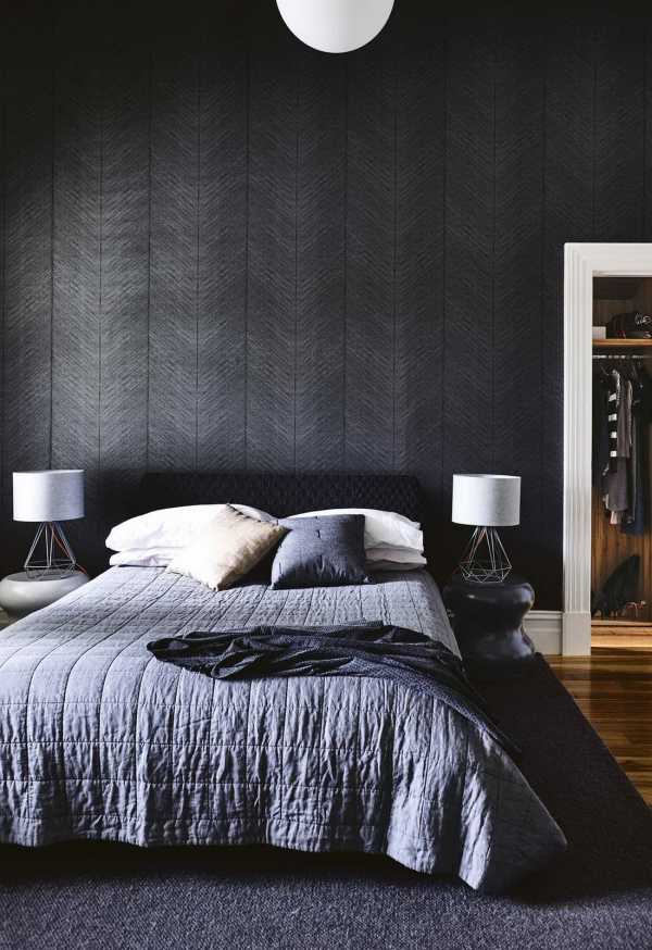 Темные обои в спальне
