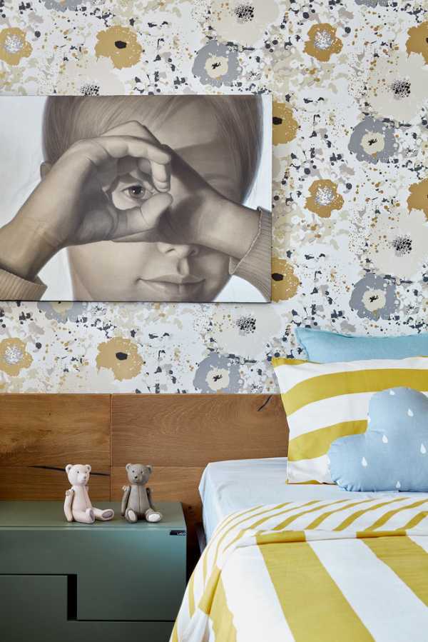 Вы можете сочетать между собой однотонные обои или дополнить базовый цвет материалом с ярким принтом.