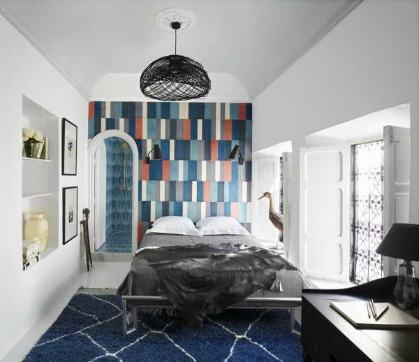 Обычно акцентная стена располагается за изголовьем кровати, либо напротив нее на противоположной стороне комнаты. Но встречаются и другие варианты. Здесь все зависит от расстановки мебели и планировки помещения.