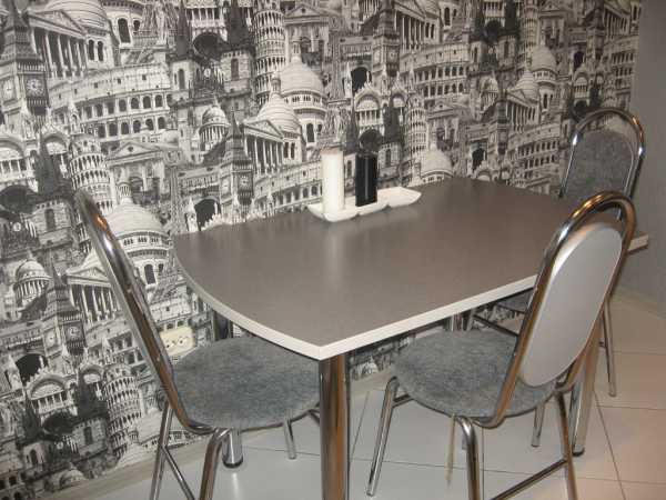 Если идет речь о проведении полноценного ремонта на кухне то в первую очередь, многие собственники квартир приобретают разные варианты обоев. Что касается фактуры, цвета обоев, тут можно попробовать разные варианты, учитывая свои личные вкусовые предпочтения, а также материальные возможности (на фото – дизайн стен кухни обоями).