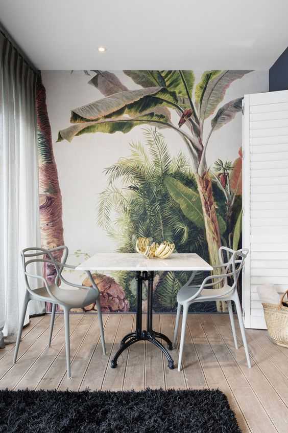 Для расположения активных рисунков лучше всего подойдет стена, которую видно со входа. Принт не должен постоянно бросаться в глаза при нахождении в комнате, иначе такое панно быстро надоест. Это, скорее всего, основной и единственный недостаток таких обоев. Как альтернатива – подберите участок сбоку от обеденного стола.