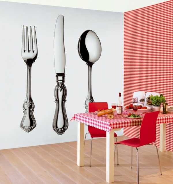 Если помещение кухни маленькое, не стоит злоупотреблять обилием рисунков на его стенах, особенно, если эти рисунки — темного цвета.