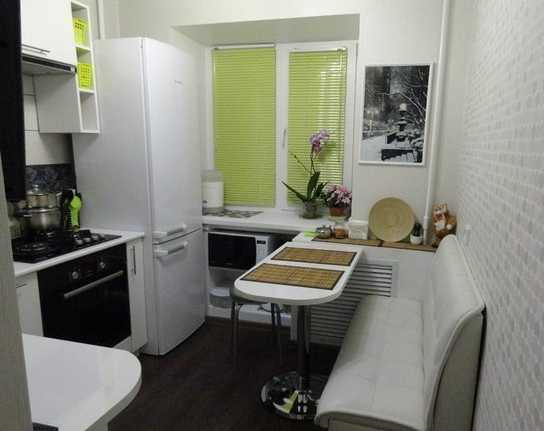 Но есть и те собственники кв. метров, предпочитающие обои нейтрального цвета, дополненные яркими элементами мебели. Традиционная обстановка, которая не допускает эпатажа, предполагает белый потолок, а также неброские материалы для декорирования стен. Светлые нейтральные оттенки, белый потолок, портьеры зеленого цвета, дизайнеры считают привычным явлением на кухне, которая не превышает 9 кв. метров. Интересным решением будет дополнение на ваших кв. метрах созданного интерьера модными аксессуарами.