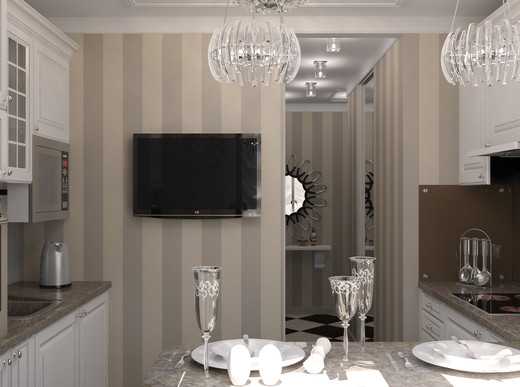 Чтобы маленькая кухня в хрущевке казалась просторнее, то при выборе обоев стоит отдать предпочтение светлым, однотонным покрытиям. Рисунки должны быть мелкими, без контрастов. Не лишним будет глянец, перламутровые и золотисто-серебряные отблески.