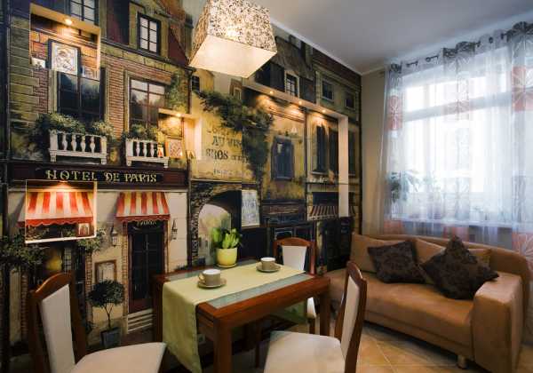 Стиль помещения диктует основные правила игры для всех деталей оформления. Фотообои – не исключение, тем более что они являются достаточно активным акцентирующим элементом. Такие обои применяются для современных стилей либо модернизированных классических или кантри.