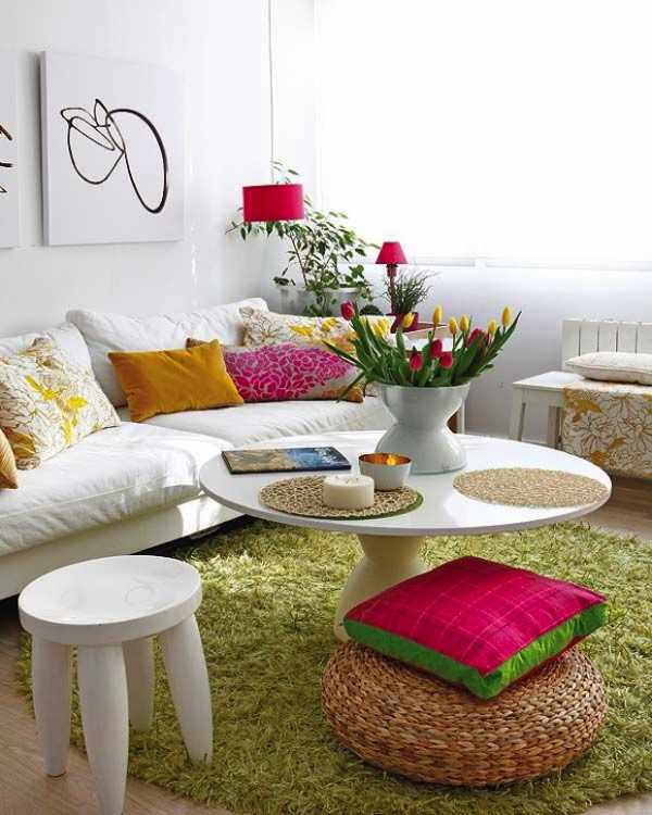 Пожалуй, самый простой способ добавить цвета и индивидуальности вашей комнате. Не бойтесь насыщенных оттенков. Больше красок – лучше настроение! Не можете найти подушки желаемых оттенков? Купите яркого ситца и сшейте наволочки самостоятельно.