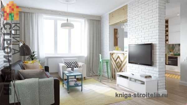 Благодаря оригинальной барной стойке разграничили территорию кухни и гостиной, а вместительный подиум, ставший одновременно шкафом, определил место спальни. На 45 кв.м квартиры удалось так же разместить совмещенный санузел и чудесную лоджию Далее в тексте статьи рассмотрим более подробно варианты отделки, перепланировки и способы сооружения барной стойки с подиумом — спальней. Ссылки на детальное описание ремонта, отделки и изготовления предметов мебели помогут грамотно справиться с поставленной задачей и узнать о возможных нюансах этих процессов 2. Подготовка квартиры к ремонту и перепланировке Интерьер обычной квартиры фото. Michail RybakovКаждый ремонт начинается с подготовительных процессов. Подготовительный процесс может включать в себя несколько этапов, перечень которых зависит от многих факторов. Например, для перепланировки квартиры могут понадобиться дополнительные разрешения от соответствующих контролирующих органов. («Евроремонт квартир» ).