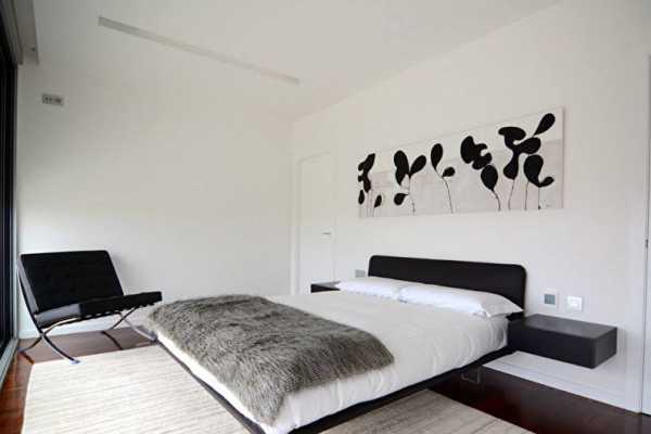 Белая спальня в современном стиле всегда выглядит стильно.